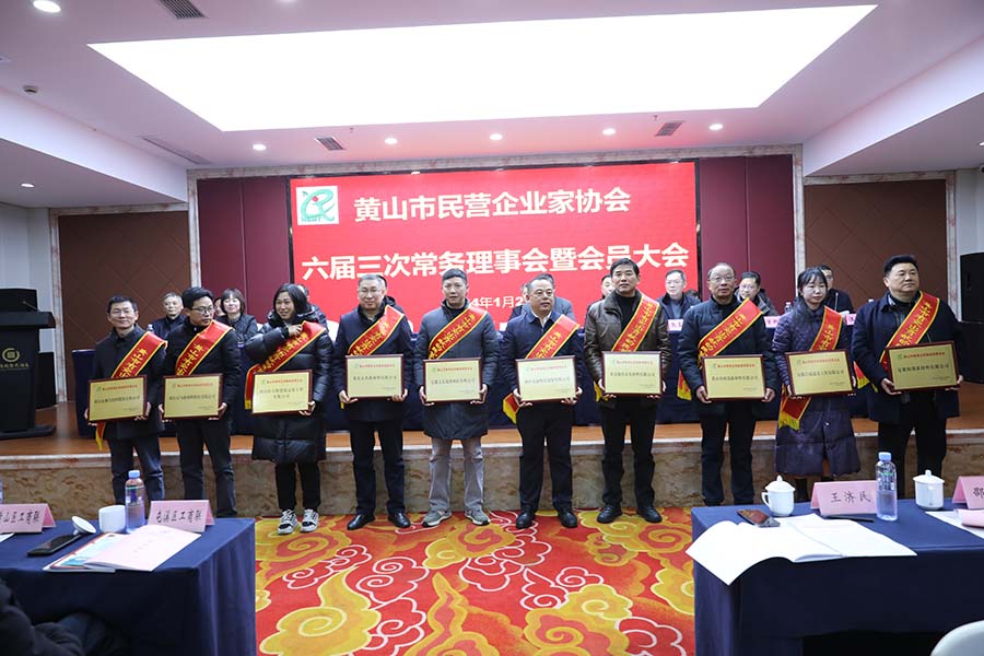 2024年1月26日下午,黃山市民營企業(yè)家協(xié)會六屆三次常務理事會暨會員大會在屯溪召開,我公司(副會長)參加了此次大會。會上表彰了10家“黃山市有突出貢獻的民營企業(yè)”和31位“黃山市優(yōu)秀民營企業(yè)家”,并舉行了授牌儀式。我公司被授予“黃山市有突出貢獻的民營企業(yè)家”榮譽稱